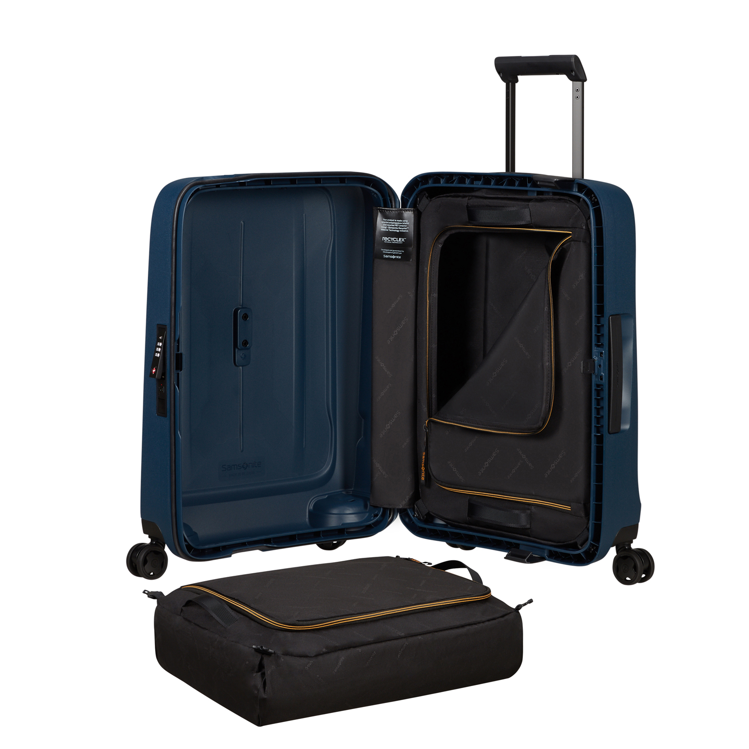 Die Außenschale des langlebigen und nachhaltigen Koffers besteht dabei mindestens aus 70 Prozent recyceltem Polypropylen. Dies ist Teil der Recyclex™ Material Technology Initiative, mit der Samsonite verantwortungsbewusstes Reisen unterstützt.