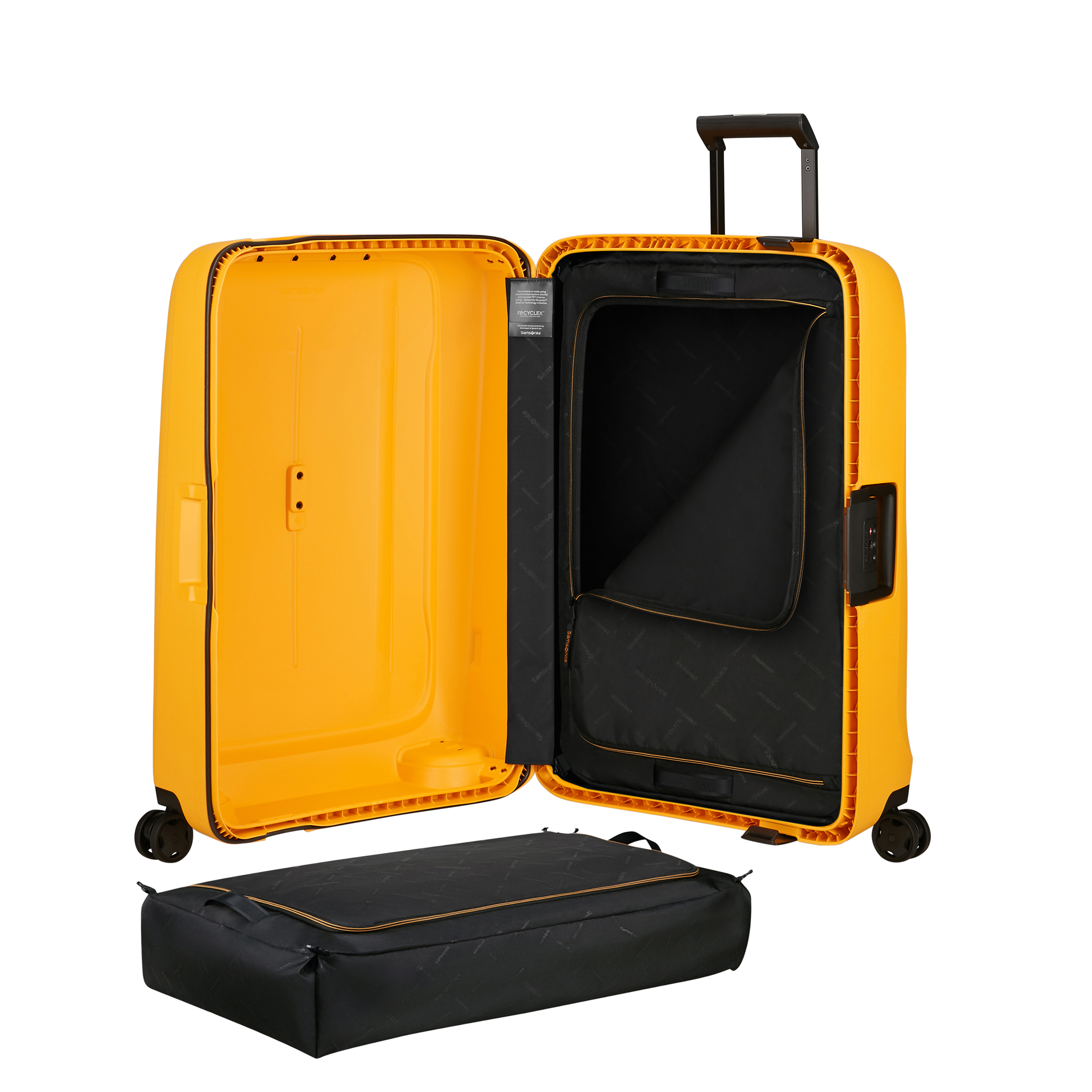 Der funktionale Trolley überzeugt zudem mit einem innovativen Packlösungs-System. Zwei abwaschbare Packwürfel lassen sich auf Reisen leicht herausnehmen und schnell im Schrank verstauen - für alle, die sich lieber schnell ins Reiseabenteuer stürzen, anstatt sich mit langem Ein- und Auspacken zu befassen. Mit dem 3-Punkt-Verschluss-System mit TSA-Schloss reisen Sie mit ihrem Reisekoffer und ihren Wertsachen zudem sicher. Die Außenschale des langlebigen und nachhaltigen Trolleys besteht dabei mindestens aus 70 Prozent recyceltem Polypropylen. Dies ist Teil der Recyclex™ Material Technology Initiative, mit der Samsonite verantwortungsbewusstes Reisen unterstützt.
